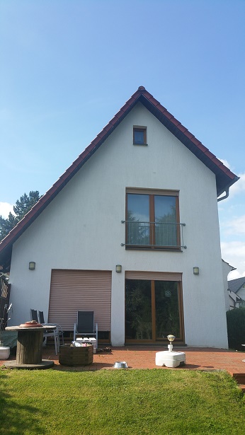 Bilder zum Apartment B | Apartment B Das (NR) Apartment B, ist in drei Varianten, als Ein- Zwei- und Drei- Raum- Apartment mit 43, 63, 75 qm zu mieten, siehe unter Apartment B und unter Apartment B, Beschreibung und Preise. Wohngebiet mit verkehrsberuhigter Zone. Gut isoliertes, tageslichtdurchflutetes Apartment mit angenehmen Raumklima im ruhigen Einfamilienhaus. 2,80m lange komplette Küchenzeile, großes Tageslicht- Duschbad, Wohnraum mit 2- und 3 Sitzer Ledercouch, Lederdrehsessel und einem 32 Zoll WLAN, Kabel TV mit Internet- TV. Schlafraum mit 3 trg. Kleiderschrank, 1,40m breitem Bett, Anrichte mit Spiegel und 20 Zoll Kabel- TV. Rauchmelder in den Räumen. Ebenfalls ein separater Wasch- und Trockenraum. Eigene Waschmaschine für das Apartment B. Gemeinsamer Trockner für Apartment A & B. Ein 28 Zoll- Damenfahrrad kann zum Apartment zur Verfügung gestellt werden. Eine Einsicht freie 15 qm Terrasse mit PKW– Stellplatz auf dem Grundstück unterhalb vom Apartment. Fahrräder können überdacht verschlossen abgestellt werden und E- Bike Akkus aufgeladen werden. Im Apartment B ist WLAN mit bis zu real 150 Mbits- Empfang möglich!